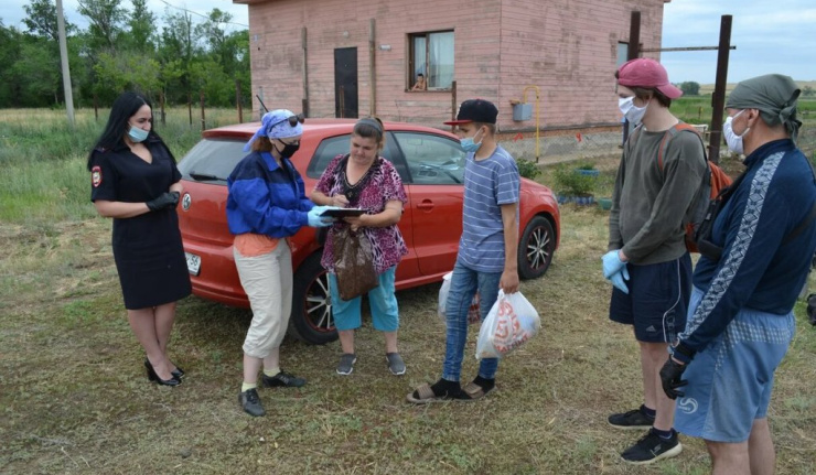 В рамках поддержки семей находящихся на самоизоляции, волонтеры вручили семьям продуктовые наборы, сотрудники полиции провели с гражданами профилактические беседы, в частности, напомнили недопустимости совершения правонарушений и соблюдении мер безопасности в местах летнего отдыха.