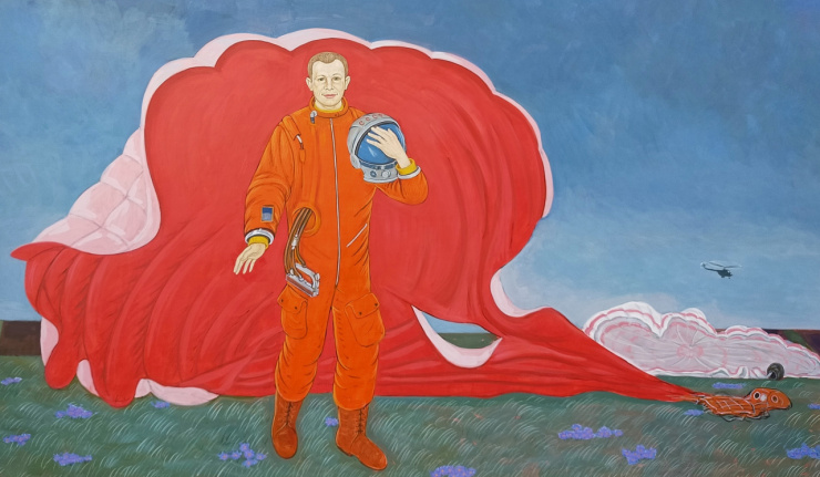 В 2018 году художник презентовал в залах Музея ИЗО полиптих «Памяти Юрия Гагарина. Русский Икар», другое, более общее название полиптиха – «XX век». Спустя время автор снова решил возобновить работу над этой темой и в 2021 году презентует новый триптих «Возвращение. Юрий Гагарин». Центральная часть работы названа «Первые шаги», по левую сторону от центра – «Родители», а по правую сторону – «Семья». Идея создания работы зрела давно, а вот ее материальное воплощение произошло за несколько месяцев нового года.