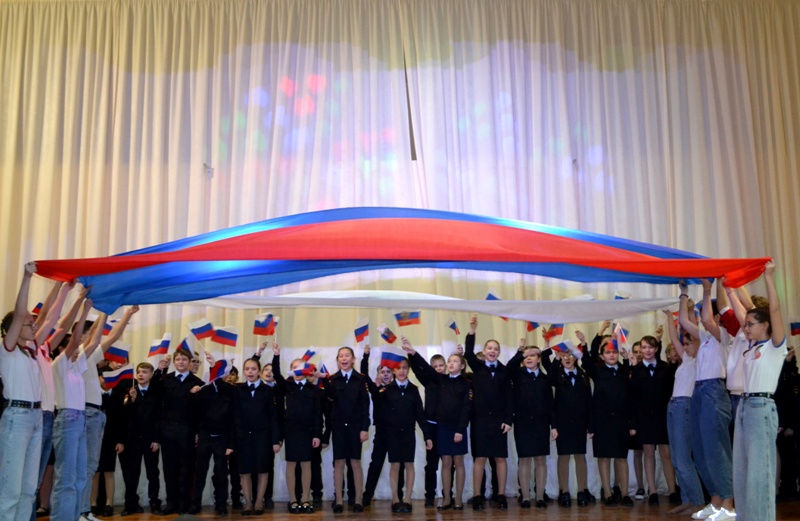 В завершение мероприятия ребята совместно со школьными ансамблями исполнили номер «Россия это мы».