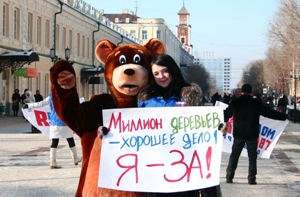 Активисты Молодой Гвардии «Единой России» вышли на главную улицу областного центра, чтобы поддержать партийный проект «Миллион деревьев», в пятницу,4 марта, передает корреспондент ER.RU.