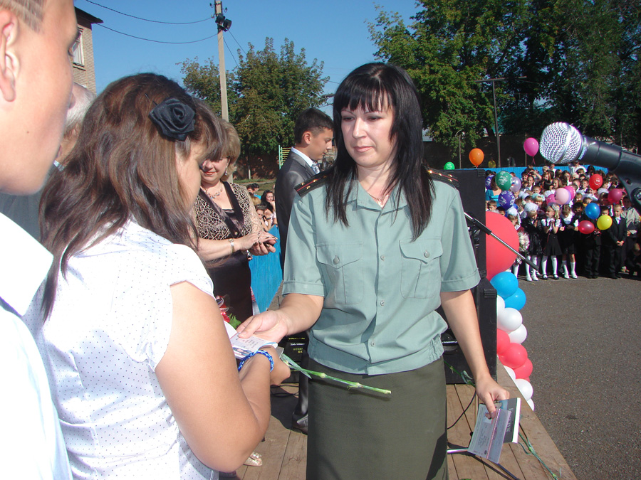 В г. Бузулуке все сотрудники отдела УФМС России по Оренбургской области приняли участие в торжественных линейках, охватив сразу несколько школ столицы Западного Оренбуржья. К тому же инспектор отдела капитан внутренней службы Марина Николаевна Губарева в школе № 3 Бузулука не только вручила паспорта учащимся, но и организовала и провела для восьмиклассников занимательную экскурсию в местный краеведческий музей. А ВрИО начальника отдела майор внутренней службы Лариса Владимировна Воронченко провела тематические уроки в 7 – 9 классах.