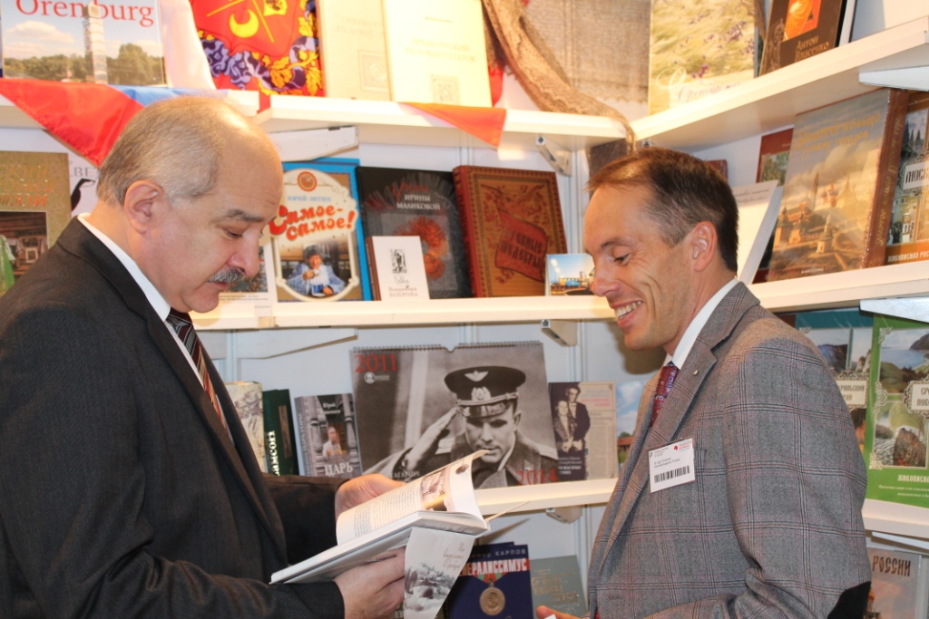 Сегодня третий день работы Франкфуртской книжной ярмарки. Вчера объединенный российский стенд, на котором благотворительный фонд «Евразия» выставляет книги оренбургских издательств, посетил Генеральный консул Российской Федерации во Франкфурте-на-Майне Руслан Карсаков. Он внимательно ознакомился со всем спектром выпускаемой литературы. В субботу Руслан Казбекович примет участие в презентации книг, рассказывающих о деятельности немецкой антифашистской группы «Белая роза» и судьбе нашего соотечественника Александра Шмореля. «Русская душа «Белой розы» Оренбургского книжного издательства и «Протоколы допросов А. Шмореля в гестапо» печатного дома «Димур» представят автор и переводчик оренбуржец Игорь Храмов, бригадный генерал бундесвера в отставке, член Правления фонда «Белая роза» из Мюнхена Винфрид Фогель, настоятель Мюнхенского кафедрального собора новомучеников и исповедников российских Русской православной церкви за рубежом протоиерей Николай Артемов. Это мероприятие – одно из основных на российском стенде – проводится под эгидой Генеральной дирекции книжных ярмарок-выставок Федерального агентства по печати и массовым коммуникациям.