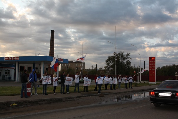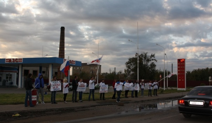 Пикет против повышения цен на бензин, организованный молодогвардейцами состоялся в г. Соль-Илецк, в среду, 19 октября, передает корреспондент ER.RU.