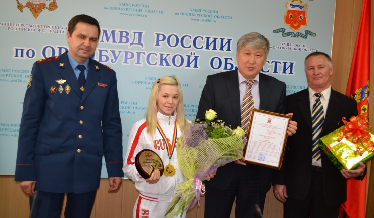 Сегодня в здании УМВД России по Оренбургской области состоялась встреча руководства Управления с сотрудником полиции Кристиной Бикбердиной, которая накануне взяла золото Чемпионата Европы по самбо. Напомним, что сотрудник полиции из Оренбургской области стала лучшей в Чемпионате Европы по борьбе самбо среди молодежи до 20 лет, который проходил в столице Румынии. В соревнованиях принимали участие спортсмены из 23 стран Европы. В весовой категории до 44 килограмм младший инструктор (по служебной и боевой подготовке) отделения по работе с личным составом МО МВД РФ «Кувандыкский» Кристина Бикбердина завоевала золотую медаль.
