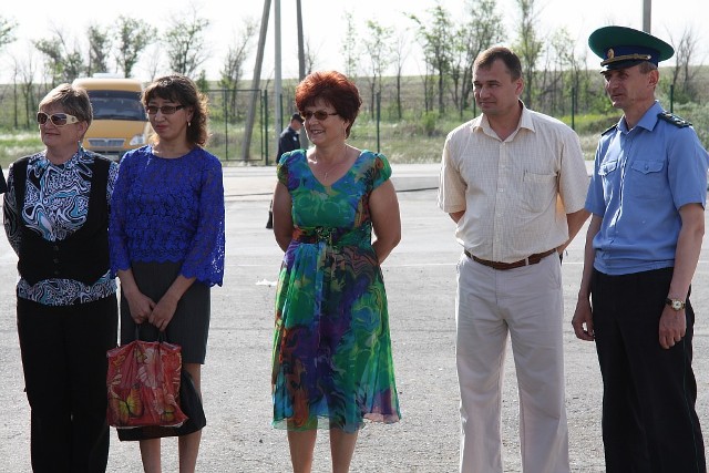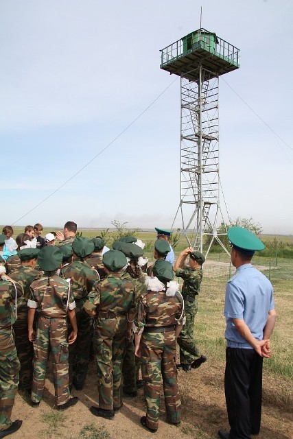 Следующими этапом экскурсии стало посещение поста пограничного контроля, где у шлагбаума нес службу часовой, а другой пограничник с помощью оптических приборов вел наблюдение за прилегающей местностью с 18-метровой вышки. Чуть позже школьники побывали в месте пересечения границы жителями приграничных территорий на направлении Пригороное - Алимбет и смогли воочию наблюдать переход границы жителями сопредельного Казахстана.