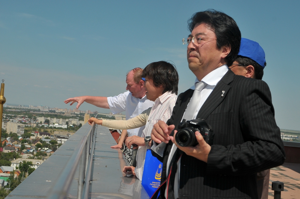 В ходе визита в Оренбург гости из Японии встретились с проректором по научной работе ОГУ С.Н. Летутой, а также посетили Японский информационный центр. Сергей Николаевич рассказал о вузе и о партнерских отношениях между Россией и Японией, инициаторами которых в нашем городе является Оренбургский госуниверситет. В частности, идея постановки мюзикла «Клятва на монете» на оренбургской сцене принадлежит сотрудникам Японского информационного центра ОГУ.