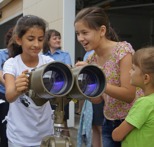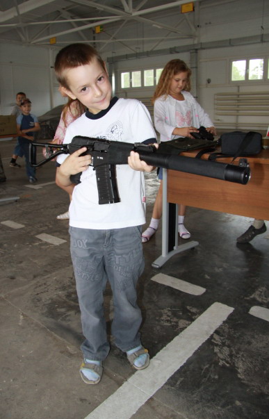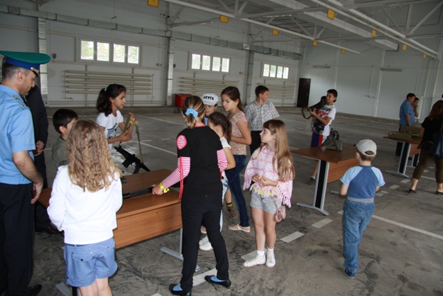 Праздник продолжился, и дети пограничников смогли не только увидеть, но и подержать в руках настоящее оружие, средства радиосвязи и приборы наблюдения. Все эти забавы с пистолетами и автоматами происходили под присмотром родителей и представительниц женского совета. Главным образом, чтобы, присмотревшись, провести потом у себя подобные детские акции.