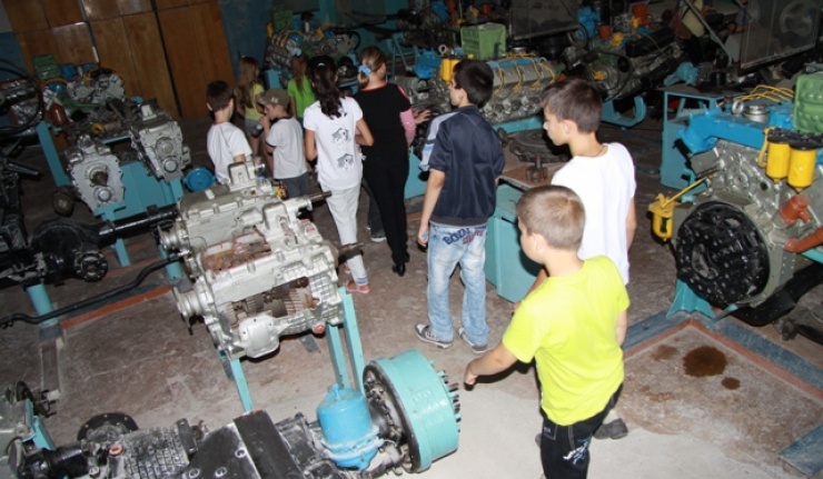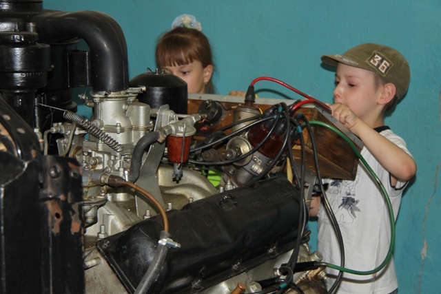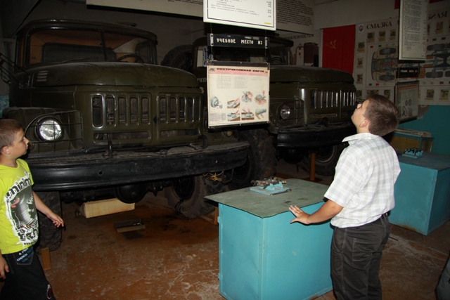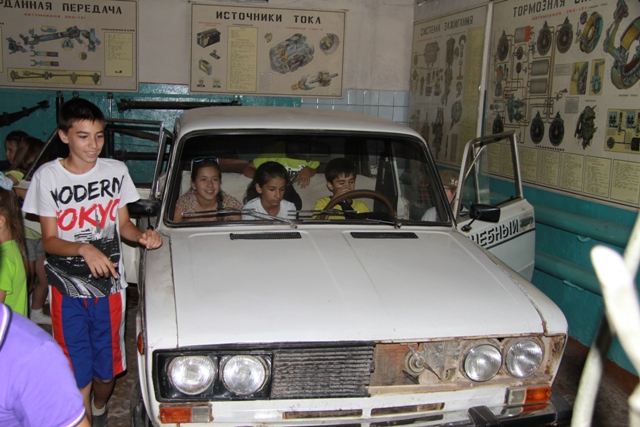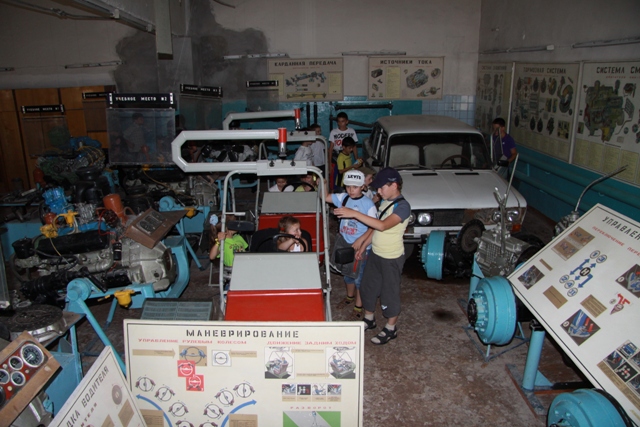 А после вкусного обеда в столовой Пограничного управления, программа дня продолжилась на базе областной автошколы РОСТО-ДОСААФ, где дети смогли увидеть в разрезе не только различные автомобили, но и их моторы и ознакомиться с методикой обучения правилам дорожного движения.