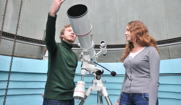 Несмотря на то что телескоп Bresser достаточно дорогой, он очень прост в использовании: сначала открывается купол, затем телескоп настраивается на нужный объект, по координатам выстраивается широта и долгота. И перед нами – космическое пространство.