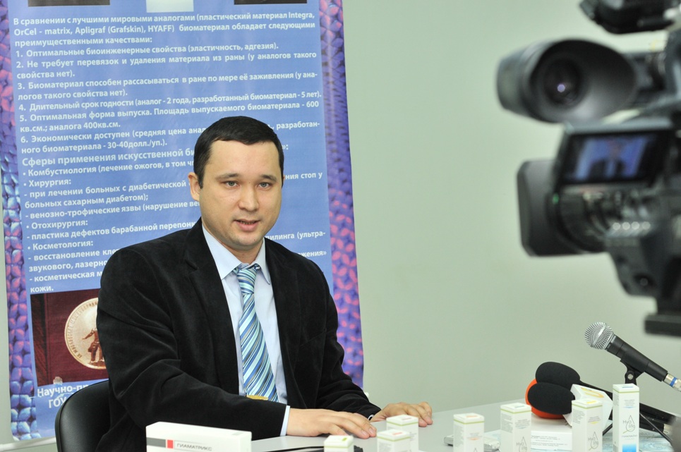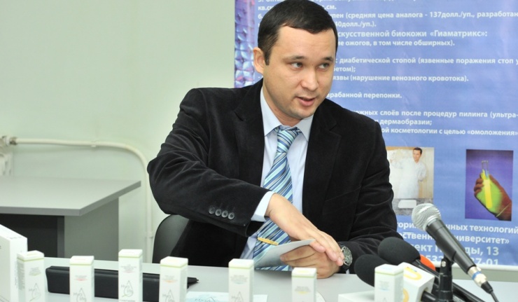 26 ноября на малом инновационном предприятии (МИП) «Биоматерия» прошла пресс-конференция по итогам работы за год и перспективах на будущее. Рамиль Рахматуллин рассказал журналистам о работе проектной группы биоматериала «Гиаматрикс». Благодаря поддержке университета и грантам правительства области за год существования МИП «Биоматерия» удалось добиться значительных результатов. На оренбургский рынок косметических препаратов выведен новый уникальный продукт под торговой маркой «Гиалайф». Это натуральные кремы и гели для лица и рук на основе гиалуроновой кислоты, способствующие замедлению процесса старения кожи. Если раньше ученые производили лишь активные компоненты косметики, а потом направляли их в Москву для упаковки, то сегодня весь цикл производства осуществляется в лабораториях МИПа, что значительно сказывается на цене.