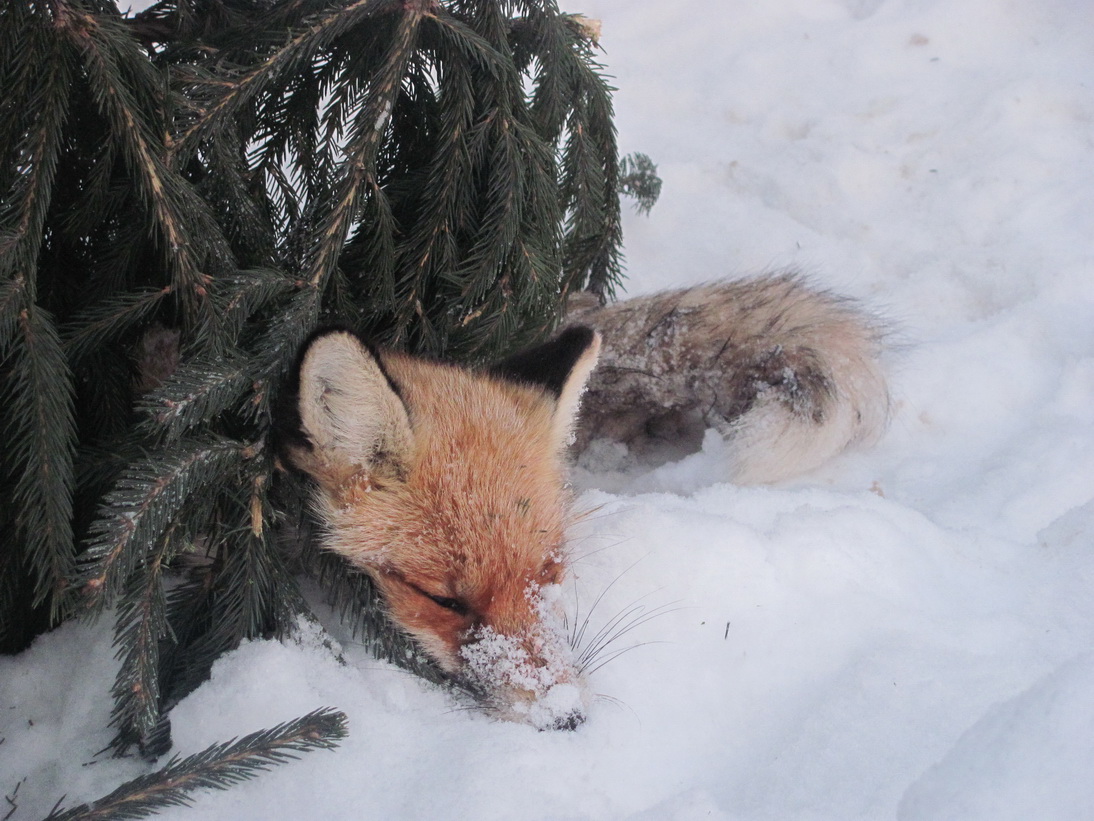 Вчера в 6 часов вечера в полицию поступило сообщение от жительницы поселка Куйбышева, что у дома по улице Малоозёрной бегает лиса и кидается на прохожих. На место происшествия немедленно был отправлен автопатруль вневедомственной охраны. Когда сотрудники полиции оказались на месте происшествия жители поселка указали им место, где спряталась лиса. Животное забилось под елкой, которая росла рядом с одним из домов.