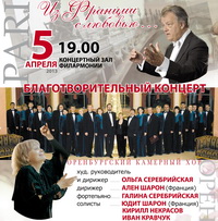 На следующей неделе в Оренбург по приглашению Оренбургского благотворительного фонда «Евразия» прибудет известный французский дирижер Ален Шарон. Вместе со своей дочерью солисткой Юдит Шарон маэстро примет участие в большом благотворительном концерте, подготовленном оренбургским муниципальным камерным хором и его художественным руководителем Ольгой Серебрийской. Концертная программа из двух частей под названием «Из Франции с любовью» включает в себя произведения К. Дебюсси, М. Равеля, Ф. Пуленка и Г. Форе. Это – мелодичный отзвук поездки прославленного оренбургского коллектива летом прошлого года на фестиваль в Нормандию.