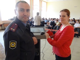 Сначала перед ребятами выступил начальник ОПДН ОМВД России по городу Новотроицку Александр Шаранов. Он сказал несколько слов о причине, по которой в лицей пришли гости из ОМВД России по городу Новотроицку. Затем слово взял председатель Общественного совета при ОМВД России по городу Новотроицку Николай Николаевич Шевчик.