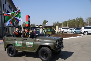 В установленное время выстроились колонны сотрудников Пограничного управления, у автомобиля с пограничной атрибутикой и символами эстафеты «Пограничная вахта памяти» замерла группа почетного караула. На борту УАЗа баннеры с надписями «95 лет на страже государственных рубежей Отечества» и «Пограничникам всех поколений посвящается», над автомобилем возвышается пограничный столб с цифрами 95.