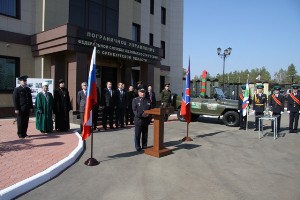 Начальник Пограничного управления ФСБ России по Оренбургской области генерал-лейтенант Дмитрий Саидов, вручил символический кубок эчтафеты и поставил приказ эстафетной группе на выдвижение в районный центр Первомайский.