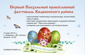 12 МАЯ 2013 г. по благословению епископа Орского и Гайского Иринея в с. Кваркено Адамовского благочиния Орской епархии состоится I Пасхальный православный фестиваль Кваркенского района.