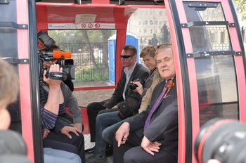Глава города, представители оренбургских СМИ и другие горожане стали первыми пассажирами обновленной «канатки». Подвесная канатная дорога длиной233 метра, котораясоединяет Набережную с Зауральной рощей, начала работу в 2006 году и сразу стала одним из излюбленных развлечений горожан и гостей Оренбурга. Ее уникальность в том, что в удобной восьмиместной кабинке можно меньше чем за две минуты попасть из Европы в Азию и обратно. Однако из-за грунтовых вод несущие опоры со временем дали небольшой крен, пользоваться «канаткой» стало небезопасно.