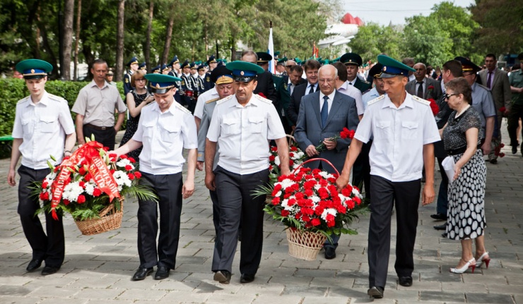 Сегодня, 28 мая 2013 года, в историко-мемориальном комплексе «Салют, Победа!» областного центра прошли торжественные мероприятия, посвященные Дню пограничника и 95-летию принятия декрета об учреждении пограничной охраны. В них приняли участие губернатор Юрий Берг, главный федеральный инспектор по Оренбургской области Сергей Гаврилин, заместитель главы г.Оренбурга Андрей Шевченко, руководители силовых структур области, представители духовенства и общественных организаций, сотрудники Пограничного управления ФСБ России по Оренбургской области, ветераны-пограничники. Участники праздника возложили цветы в Вечному огню и приняли участие в молебне в часовне Св. Георгия Победоносца в память о воинах-пограничниках, погибших при исполнении служебного долга, почтили минутой молчания память тех, кто сложил головы, защищая границы Отечества.