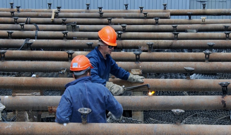 В бассейне градирни, где происходит процесс охлаждения воды, работники смонтировали слой специального оросителя на огромной площади – 2600 квадратных метров. Установили более двух тысяч сопел, похожих на мини-фонтаны. Все это оборудование закрепили с помощью шести тысяч гаек и шурупов, 29 тысяч специальных крючков.