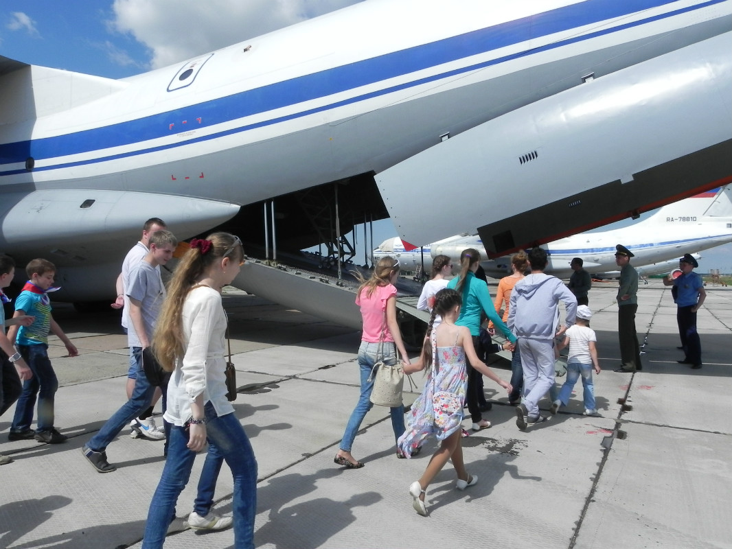 После подведения итогов соревнований гостей праздника ждал сюрприз - экскурсия на военный аэродром. И взрослые, и дети с одинаковым интересом послушали обзорную лекцию о возможностях современной военно-транспортной авиации. Экипаж самолета Ил-76 продемонстрировал им запуск двигателей, а самым любознательным разрешили подержать штурвал.