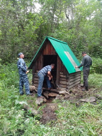 Под руководством начальника тыла Константина Генералова, все дружно взялись за работу. Лопатами, вилами и граблями русло родника очистили от травы, очистили дно от ила и грязи, вокруг косой скосили траву, покрасили избушку, установленную над родником и привели в порядок стол и скамейку, которые установлены рядом. Пару часов работы и источник заискрился чистой и прозрачной водой.