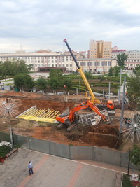 В конце прошлой недели на проспекте Победы начались работы по укладке нижнего слоя дорожного покрытия и установке бортового камня. В течение всей неделе по прогнозам синоптиков в Оренбурге ожидаются дожди, в связи с чем были приостановлены и перенесены на более поздний срок работы по строительству тротуаров, а все силы были брошены на укладку нижнего слоя дорожного покрытия. Строителям надо успеть сделать всё максимально быстро, так как в уширения проезжей части важно не допустить попадания воды.