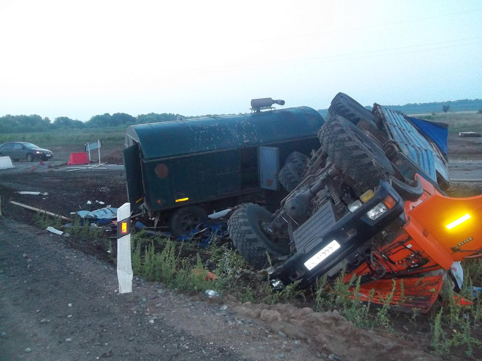 07.08.2013 года в 05 ч. 00 мин. на автодороге на подъезде к Оренбургу от а/д М5 «Урал» 161 км. + 943 метра, Бузулукского района, Оренбургской области, водитель управляя автомобилем Камаз-580201, двигаясь со стороны города Бузулука в сторону Самары, при подъезде к участку дороги, на котором производятся дорожные работы, совершая поворот направо не справился с управлением, допустил съезд в левый по ходу движения кювет с последующим опрокидыванием.
