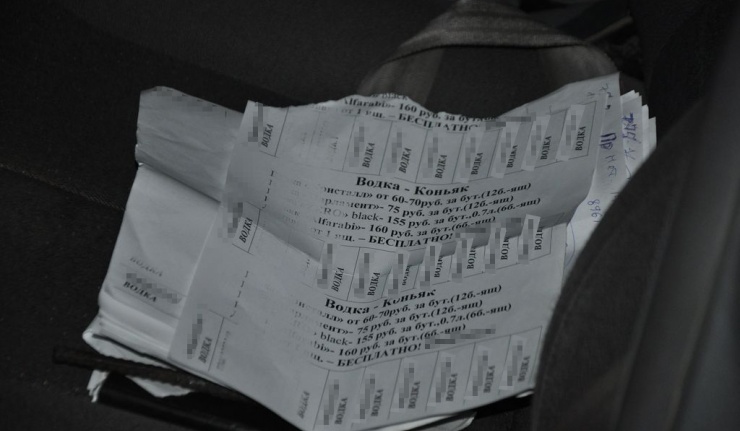 В ходе проведения оперативно-розыскных мероприятий факт сбыта водочной продукции был задокументирован. В автомобиле данного гражданина была обнаружена и изъята печатная продукция, рекламирующая доставку и реализацию алкоголя, и средства мобильной связи.
