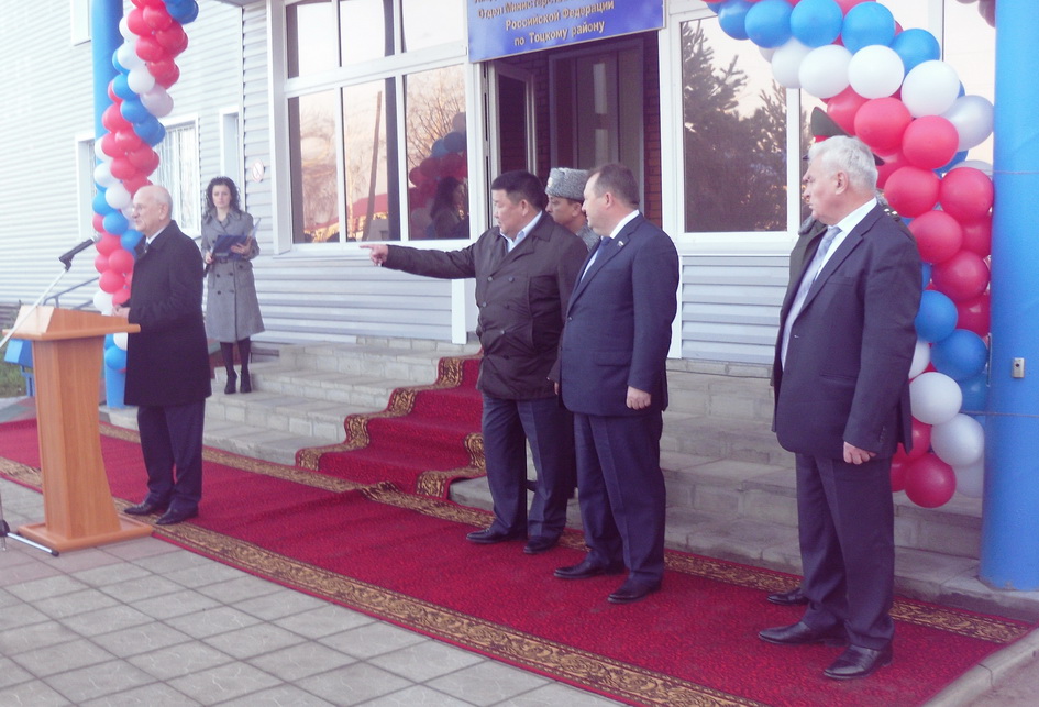 Сегодня состоялось официальное открытие после капитального ремонта здания отдела МВД России по Тоцкому району. Капитальный ремонт объекта начался в 2012 году. На реконструкцию здания было выделено и освоено почти 17 миллионов рублей из федерального бюджета. На торжественное открытие здания прибыл Губернатор - председатель Правительства Оренбургской области Юрий Берг, начальник УМВД России по Оренбургской области Ефрем Романов, заместитель председателя Законодательного собрания Оренбургской области Александр Сало, глава Тоцкого района, руководители, личный состав и ветераны отдела полиции. В своем выступлении Юрий Берг поздравил сотрудников Тоцкой полиции с новосельем и наступающим праздником Днем сотрудника органов внутренних дел, а также вручил старшему участковому уполномоченному полиции ОМВД России по Тоцкому району Виктору Спирину служебный автомобиль.