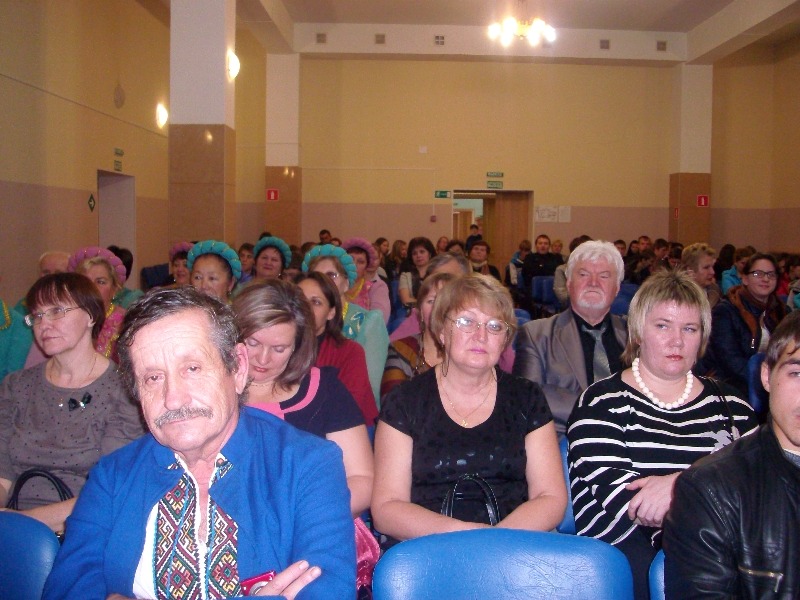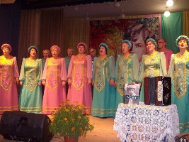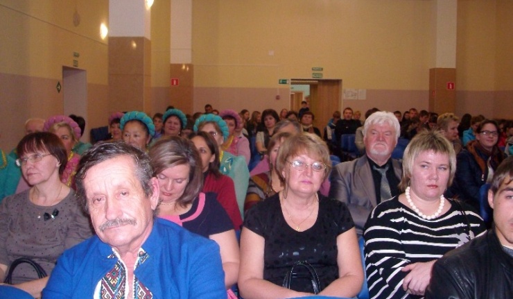 И под сводами зала зазвучала очаровательная мелодия песни в «Отговорила роща золотая…» проникновенно прозвучала в исполнении П-Покровкого народного ансамбля «Встреча».