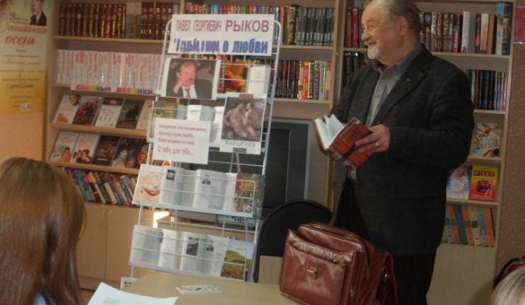 Павел Георгиевич очень известный человек в Оренбуржье! Он всегда занят, но любезно согласился на встречу с читателями. У нас были студентки Оренбургского аграрного колледжа, ученики местной школы, жители села. Небольшая библиотека по площади вместила всех любителей поэзии и прозы известного поэта, писателя, драматурга, журналиста Оренбуржья, Павла Георгиевича Рыкова. Легендой радио и телевидения называют в нашем крае Павла Георгиевича.