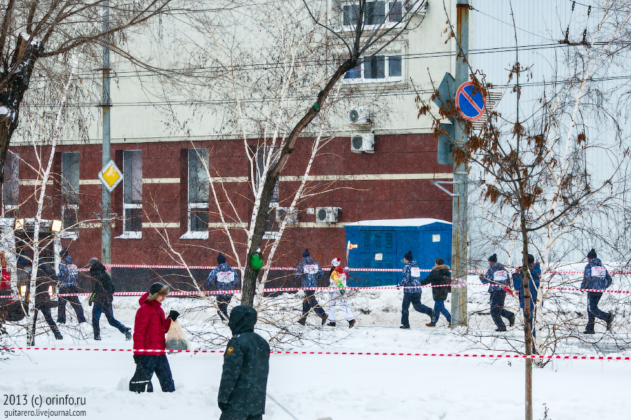 Факелоносцы пронесли Огонь по проспекту Дзержинского, мимо строящегося Собора Казанской иконы Божией Матери - копии разрушенного в 30-е годы прошлого века Казанского кафедрального собора, по улице Салмышской, мимо МНТК «Микрохирургия глаза» имени академика С.Н.Федорова.