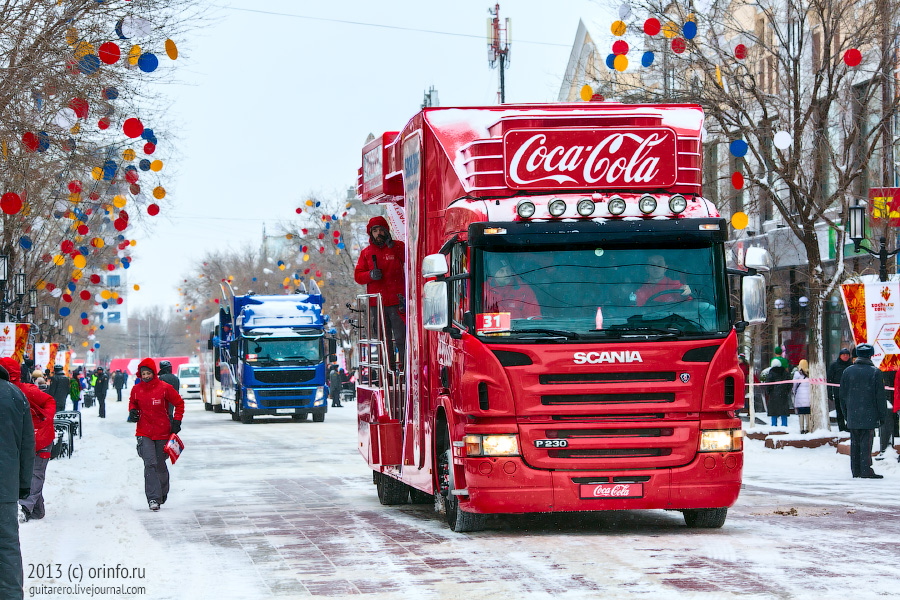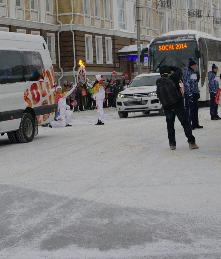 Олимпийский огонь с Привокзальной площади по Парковому проспекту, улицам Цвиллинга и Невельской проследовал на главную улицу областного центра – Советскую.