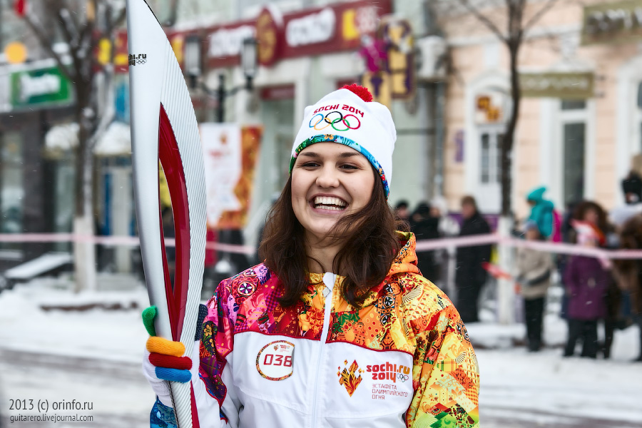 На протяжении всего маршрута частицу Олимпийского огня и факелоносцев приветствовали тысячи жителей и гостей Оренбурга. Пропустить такое событие никак нельзя, говорят они. Люди разных возрастов скандировали: Россия – Сочи - Олимпиада!
