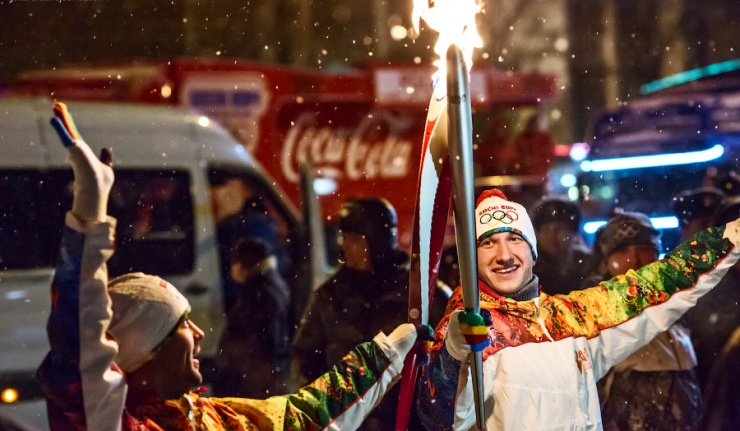 Финальный факелоносец Эстафеты Павел Полтавцев пожелал успехов российским спортсменам на Играх в Сочи: