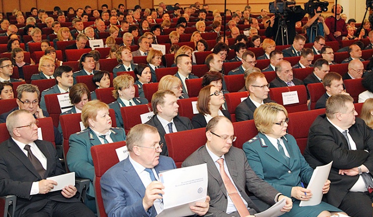 25 февраля состоялось заседание расширенной коллегии ФНС России, посвященной итогам работы за 2013 год и основным задачам на 2014 год. Коллегия прошла под председательством руководителя Федеральной налоговой службы М.В. Мишустина. В работе коллегии приняли участие Первый заместитель Председателя Правительства Российской Федерации И.В. Шувалов, Министр финансов Российской Федерации А.Г. Силуанов, Первый заместитель Генерального прокурора Российской Федерации А.Э. Буксман, депутат Государственной Думы Федерального Собрания Российской Федерации, председатель Комитета Государственной Думы по бюджету и налогам А.М. Макаров, аудитор Счетной палаты Российской Федерации С.И. Штогрин, руководитель Главного организационно-инспекторского управления Следственного комитета Российской Федерации А.П. Коротков, Руководитель Федерального казначейства Р.Г. Артюхин, заместители руководителя Федеральной налоговой службы С.Н. Андрющенко, С.А. Аракелов, С.Л. Бондарчук, Н.С. Завилова, А.Л. Оверчук, А.С. Петрушин, Д.В. Наумчев, Д.Ю.Григоренко, Д.В.Егоров.