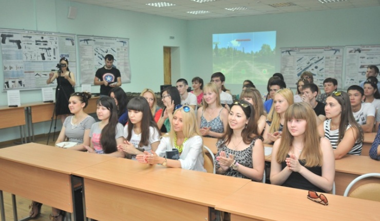 Заместитель декана финансово-экономического факультета ОГУ Сергей Семенов рассказал присутствующим о возможностях лазерного интерактивного тира «Рубин». Цель его использования в учебном процессе – это получение первоначальных знаний об оружии, а также отработка навыков стрельбы студентов из пистолетов Макарова, Ярыгина, Glock и автомата Калашникова в результате выполнения заданий и упражнений, разработанных на основе приказа МВД РФ от 13.11.2012 г. № 1030. Также в тире могут совершенствовать уровень огневой подготовки будущие сотрудники органов внутренних дел при обучении приемам и правилам стрельбы из стрелкового оружия. Уникальность интерактивного лазерного тира «Рубин» состоит в том, что в работе не требуется применение боевых патронов, что обеспечивает достаточную безопасность для студентов. Помимо этого, в интерактивном тире имеются информационные стенды и специальная учебная литература, где студенты специальности «Экономическая безопасность» могут больше узнать о представленных видах оружия.