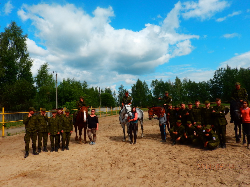 Еще одним ярким событием дня стала экскурсия в конно-спортивный клуб, расположенный в Ильиногорске Володарского района Нижегородской области. Ребята с удовольствием покатались на лошадях, выучили основные приемы конной выездки. Инструкторы клуба рассказали много увлекательного из истории конного спорта, о породах лошадей и их отличиях. Юные «гвардейцы» не только смогли почувствовать себя наездниками и кавалеристами, но и покормить лошадей, узнать много нового об уходе за ними.