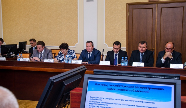 Говоря о межведомственном взаимодействии при принятии мер по недопущению массовых вспышек инфекционных заболеваний, Сергей Гаврилин подчеркнул достаточно серьёзные масштабы этой проблемы. Ежегодно среди населения области регистрируются около 400 тысяч инфекционных заболеваний. Одним из факторов, имеющих определяющее значение при профилактике инфекционных заболеваний, является качество питьевой воды. Несмотря на то, что органами власти региона за последние годы сделано немало для сохранения стабильной санитарно-эпидемиологической обстановки, проблема качества питьевой воды всё ещё сохраняет свою остроту. Так, до настоящего времени остаются «бесхозными» 22 сельских водопровода, на 32% водопроводов не организован производственный лабораторный контроль, 21% питьевых водозаборов не имеют организованной зоны санитарной охраны. Главный федеральный инспектор рекомендовал представителям региональных структур федеральных органов исполнительной власти в рамках имеющихся контрольно-надзорных полномочий оказывать более действенную помощь в реализации областной целевой программы «Обеспечение населения Оренбургской области питьевой водой на 2010-2016 годы», федерального закона «О водоснабжении и водоотведении». Сергей Гаврилин также отметил, что в последние десятилетия на ситуацию с инфекционными заболеваниями значительное влияние оказывает увеличение миграционных потоков и присутствия иностранных граждан, выезды наших граждан за рубеж. Существенное возросли риски проникновения через границу с Республикой Казахстан продуктов, животных, птиц и растений, зараженных вирусами особо опасных инфекций. В числе наиболее актуальных проблем - предотвращение вспышек инфекционных заболеваний в учреждениях отдыха и оздоровления детей в период летних каникул, полноценное медицинское сопровождение делегаций ребят для участия в мероприятиях Приволжского федерального округа «Туриада», «Гвардеец», «iВолга» и других.