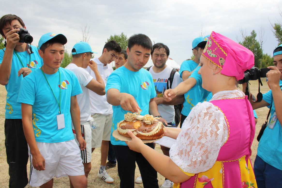 Организаторы лагеря встречали российскую делегацию в аэропорту в ярких национальных костюмах под мелодичные песни на домбре, угощая кумысом и баурсаками.