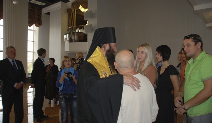 – Я считаю, что это одно их самых главных мероприятий. Мы с актерами давно разговаривали на эту тему, чтобы освятить театр. Я обратился к владыке Иринею с такой просьбой, и он не отказал. Я очень волновался перед этим, но сейчас у меня хорошо на душе. Только что позвонила супруга губернатора области Любовь Федоровна Берг и поздравила нас с этим событием. Я считаю, что театр и Церковь в чем-то дополняют друг друга: мы несем людям все вечное, ценное, хорошее.