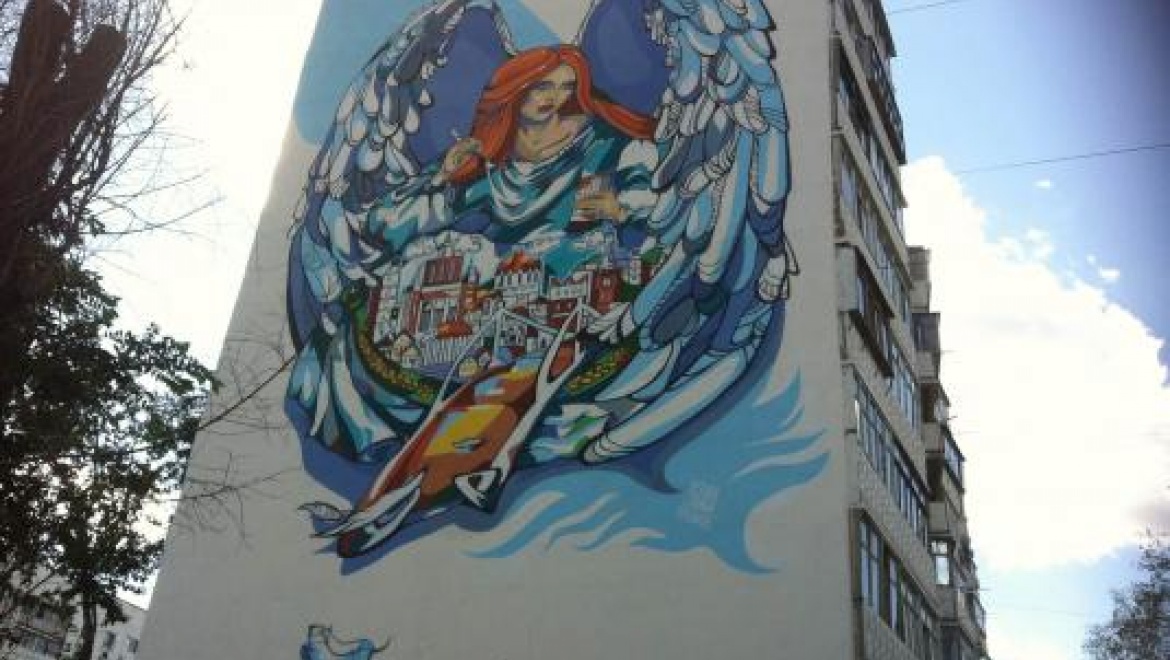 Женщину в образе Ангела-хранителя нашего города авторы Александр Литвинов, Мария Скопинцева и Дарья Савина создавали в течение месяца. В руках у хранительницы кисть и дом, который она разрисовывает. Ниже представлены главные достопримечательности столицы Оренбургского края: пешеходный мост через Урал, библиотека ОГУ, знак «Европа-Азия», музей истории города.