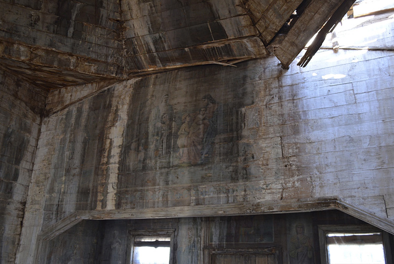 Положение усугубляется и тем, что месяц назад в результате урагана обвалились ветхие перекрытия крыши средней части храма, и весь проход был засыпан почти по колено саманом и глиной. Посему и было решено среди мероприятий Отдела на оставшийся год выделить время на реставрацию и консервацию ветхого здания.