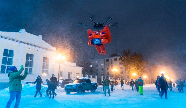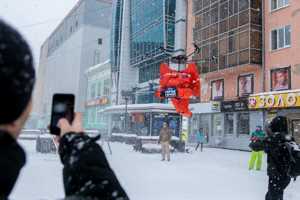 «Над созданием небесного арт-объекта трудилось немало дизайнеров, художников и техников. Самым сложным оказалось создать механизм, который позволит поднять двухметровую фигуру робота на высоту 50-100 метров. Летающий объект прошел целую серию тестов на специальном полигоне. Красный цвет фигуры привлекает внимание горожан, социальные сети уже заполнились видео очевидцев», - рассказывают организаторы.