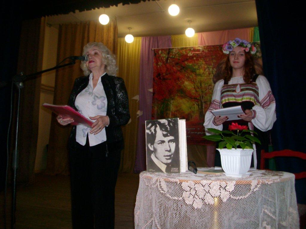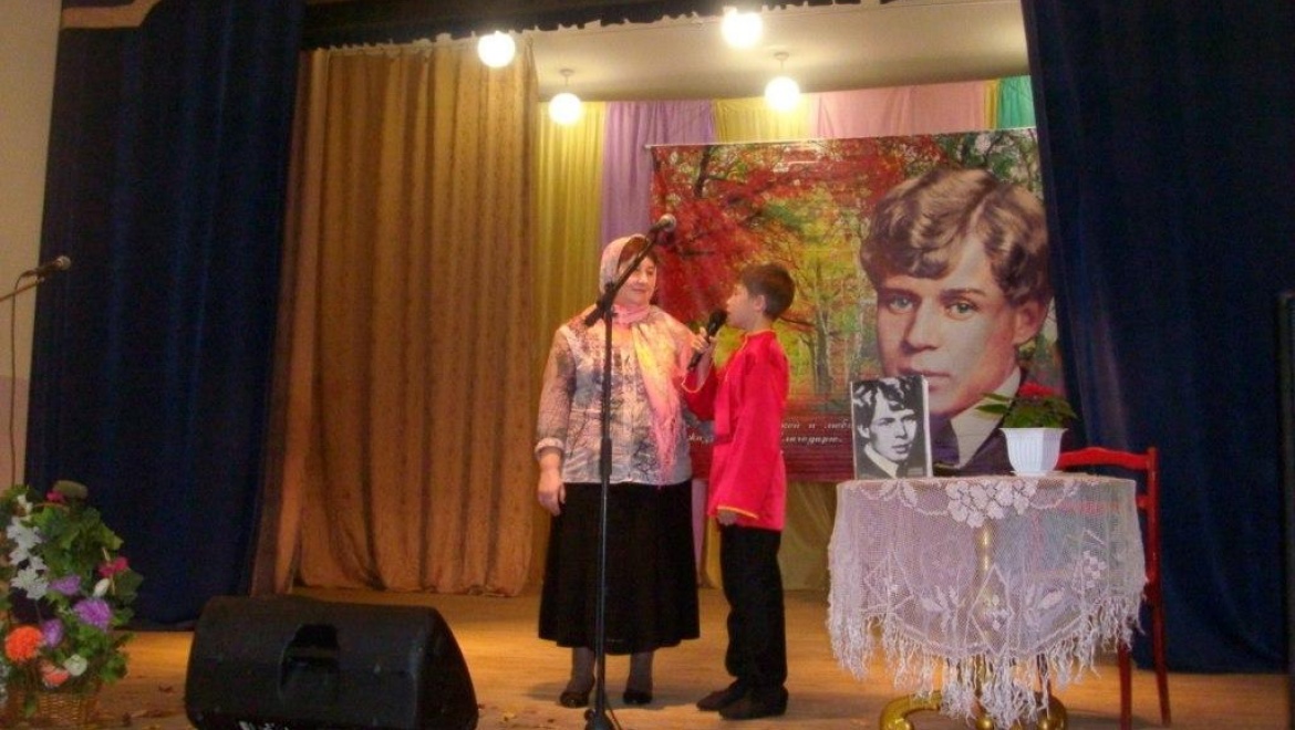 Теме родины и был посвящен наш вечер. Дети восторженно читали стихи Сергея Есенина, исполняли песни на его стихи. Всех присутствовавших в зрительном зале покорила Даша Федорова, ученица 10 класса. Она прочитала наизусть всю поэму Сергея Есенина "Черный человек". Эта поэма не совсем вписывалась в тему нашего праздника, но когда мы услышали, как красиво читает Даша эту поэму, мы включили ее в наш сценарий. Чтение сопровождалось показом слайдов, специально подобранных под поэму. Вечер украшали видеоролики, тщательно подготовленные В.М.Филипповой, под каждую песню, под каждое стихотворение, исполняющих местными артистами и приглашенными гостями.