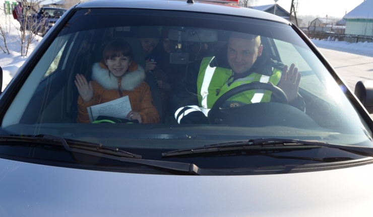 В ходе рейда школьники вместе с инспекторами беседовали с водителями и вручали им памятки по правилам приобретения и использования детского удерживающего устройства. А затем, на патрульном автомобиле проехали по центральной улице села и, с помощью сигнально-говорящего устройства, обращались к пешеходам с просьбой пересекать дорогу по пешеходному переходу, не ходить по проезжей части и использовать в темное время суток световозвращающие элементы.