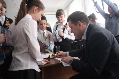 7 апреля министр физической культуры, спорта и туризма области Олег Пивунов в рамках областной литературно-патриотической акции «Читаем детям о войне» познакомил пятиклассников оренбургской средней общеобразовательной школы № 51 с произведением Николая Тихонова «Руки» из сборника «Ленинградские рассказы». Мероприятие, посвященное 70-летию Победы в Великой Отечественной войне, прошло в Оренбургской областной полиэтнической детской библиотеке.