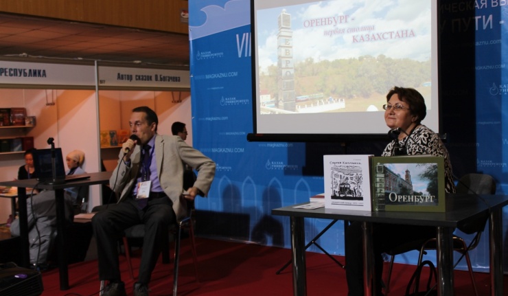 С рассказа об Оренбурге – первой столице Казахстана – началась сегодня работа национального стенда «Книги России» на VIII международной книжной выставке в Алма-Ате. Федеральное агентство по печати и массовым коммуникациям вместе с Ассоциацией книгораспространителей независимых государств предоставили такую возможность Оренбургскому книжному издательству им. Г.П. Донковцева в рамках книжного форума «По великому шелковому пути». Вместе с президентом Оренбургского благотворительного фонда «Евразия» Игорем Храмовым красочную презентацию нашего региона в «культурной столице» Казахстана осуществляла директор Государственного архива кинофотодокументов и звукозаписей Республики Казахстан Алла Сеитова. По приглашению «Евразии» в августе прошлого года она привозила в Оренбург выставку «Четыре столицы Казахстана».