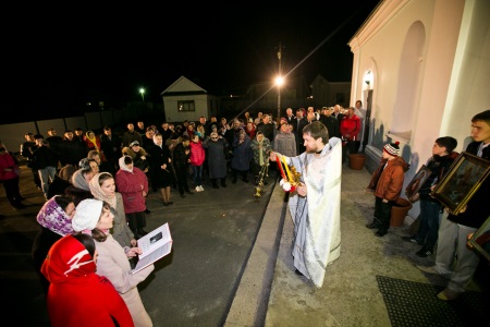 После Полунощницы (общественного богослужения, совершаемого ровно в полночь) все собравшиеся стали участниками Крестного хода, символизирующего шествие жен-мироносиц к гробу Спасителя.