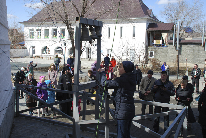 Перед началом конкурса был совершенсовместный молебен на начало доброго дела, затем участники, прибывшиеиз Орска, Новотроицка и Гая, приступили к исполнению пасхальных и произвольных звонов.